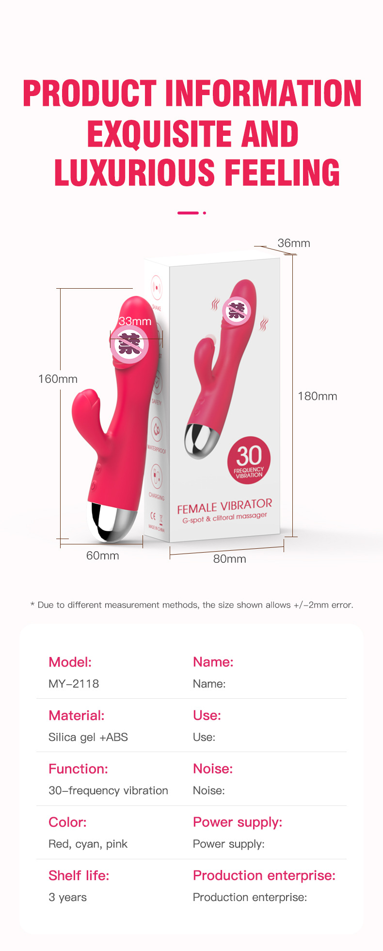 Silicone charging double head vibrator female masturbation massager